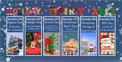 Friday, December 12 - Pajama Day ($1 Donation for Custodians)